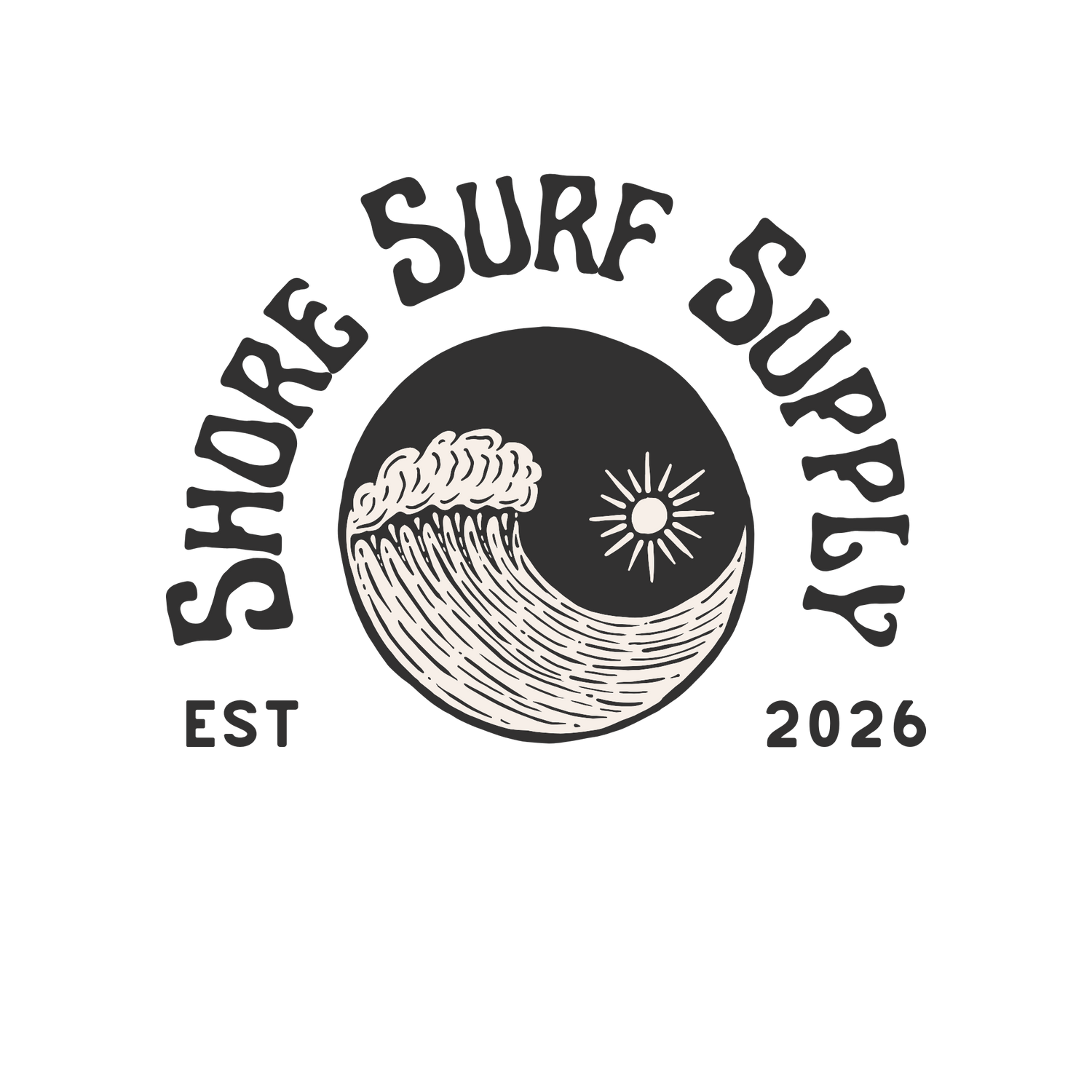 Shore Surf Supply Kiss-Cut Sticker — Palm Trees & Sunset Laptop Decal